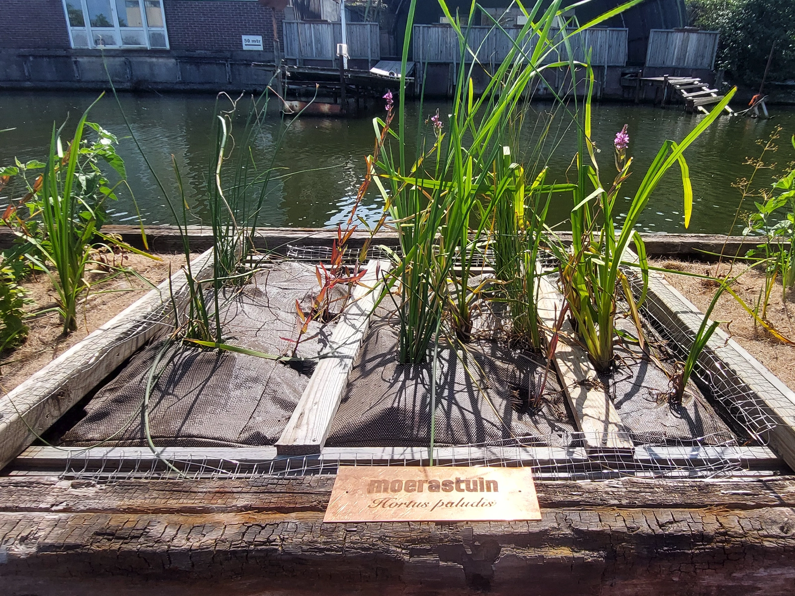 Daarnaast drijven er twee tuinen op geëxpandeerde kurkplaten met openingen voor de wortels, een beproefd ontwerp van Helkant Plant.